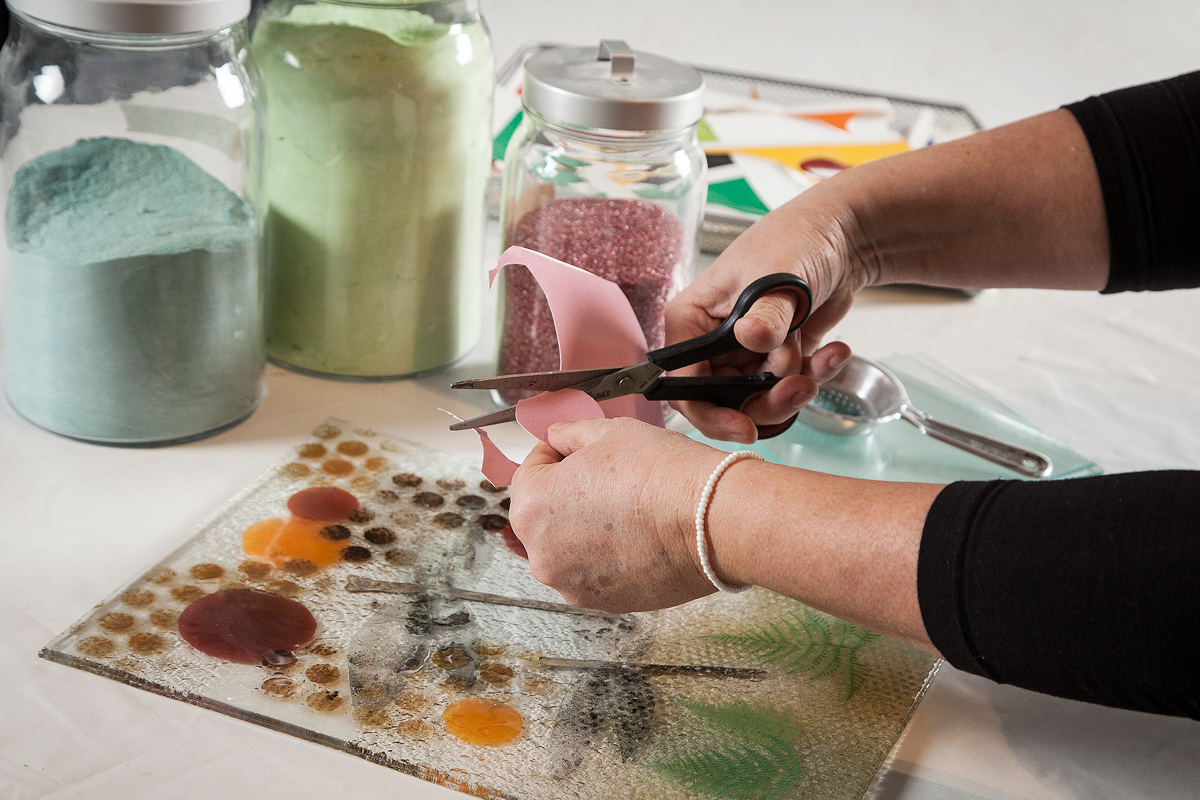 Vill ni uppleva glashantverk och skapa fina minnen tillsammans?  Varmt välkomna till min glashytta där jag visar hur man tillverkar unika glastavlor i fusingteknik. Vi klipper ut former i dekalpapper samt arbetar med slagmetaller och glasfärger.