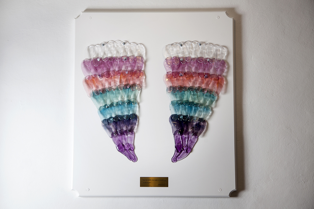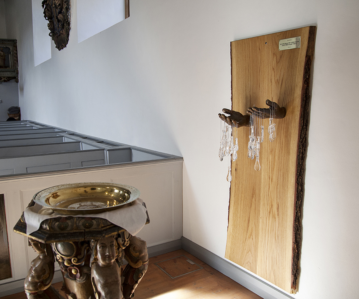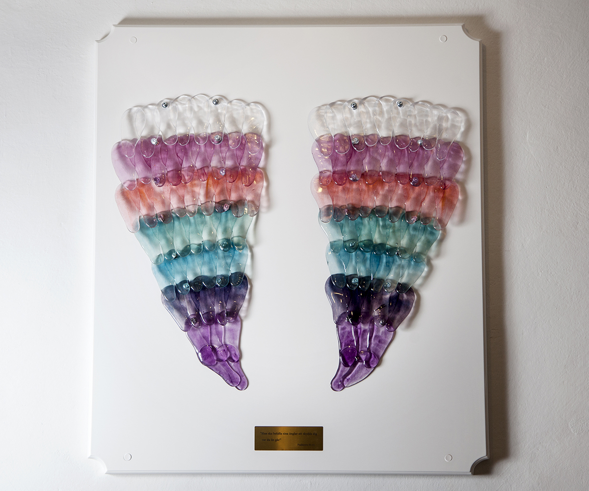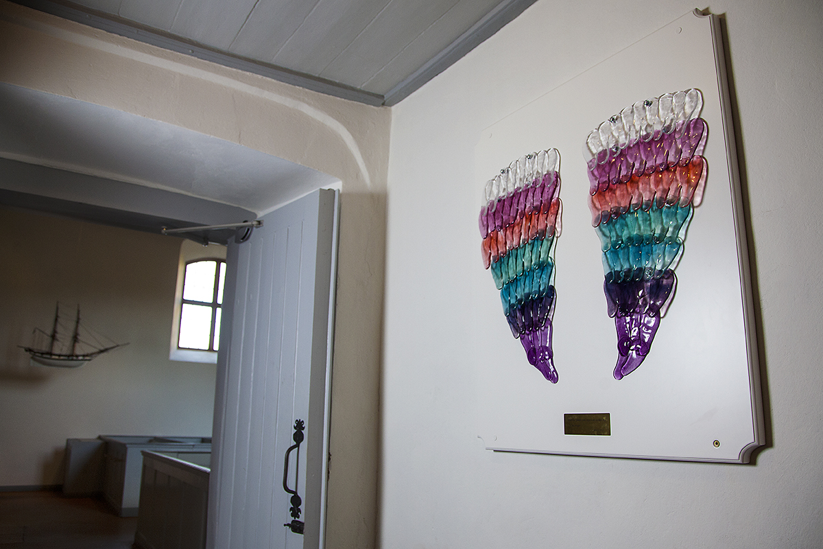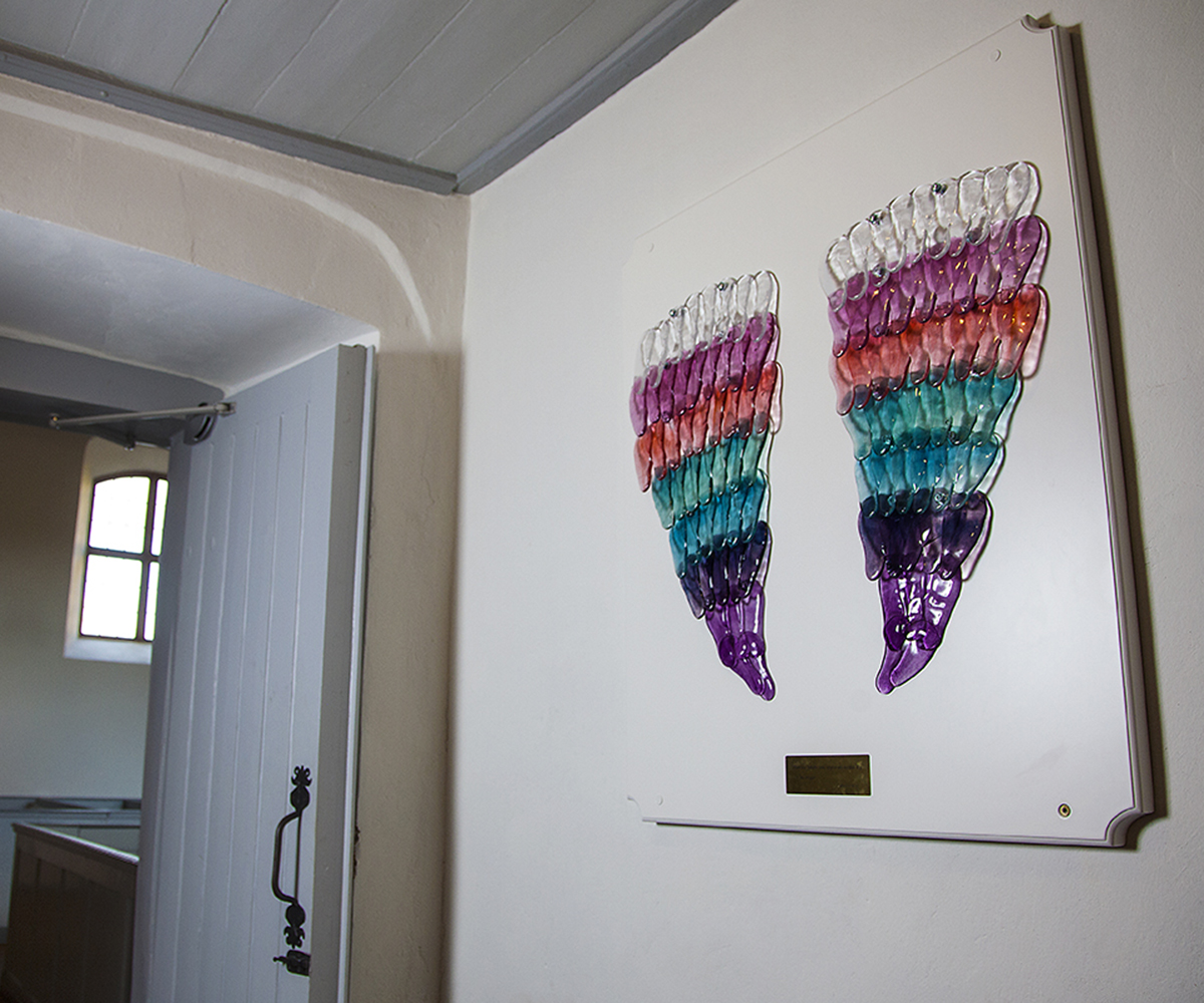 Jag fick förtroendet att tillverka Nättraby kyrkas altarkors samt kyrkans dopdroppar. Kort därefter utsmyckade jag även Kyrkans vapenhus där jag tillverkade ”Änglavingar” i regnbågens alla färger. Jag arbetade med varmt glas som jag därefter fusade samman. Vingarna symboliserar kyrkans öppenhet välkomnande. Jag hade i detta arbete en nära dialog med kyrkoherde Maria Therese Ingridsson.