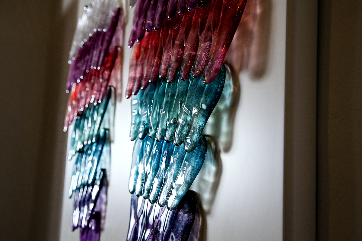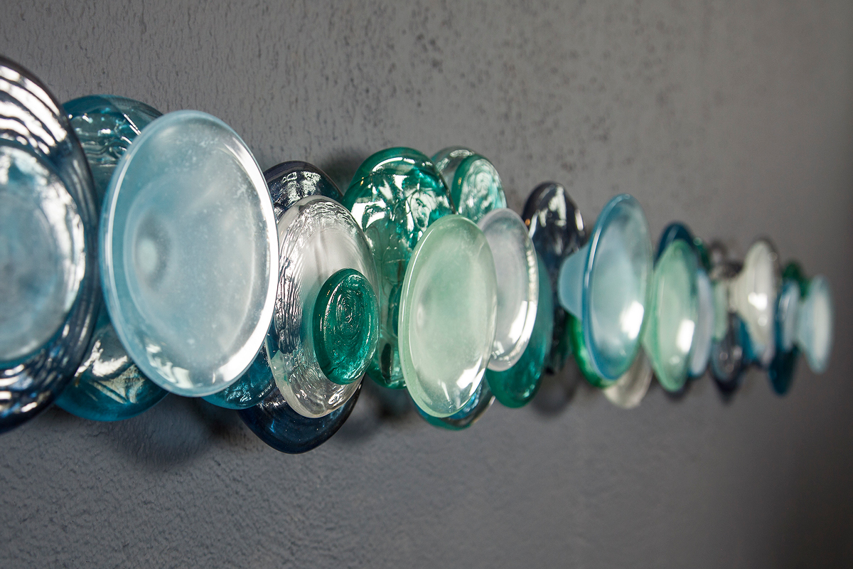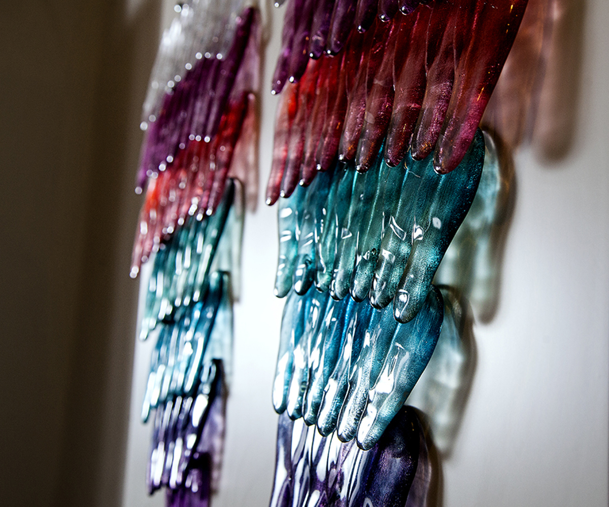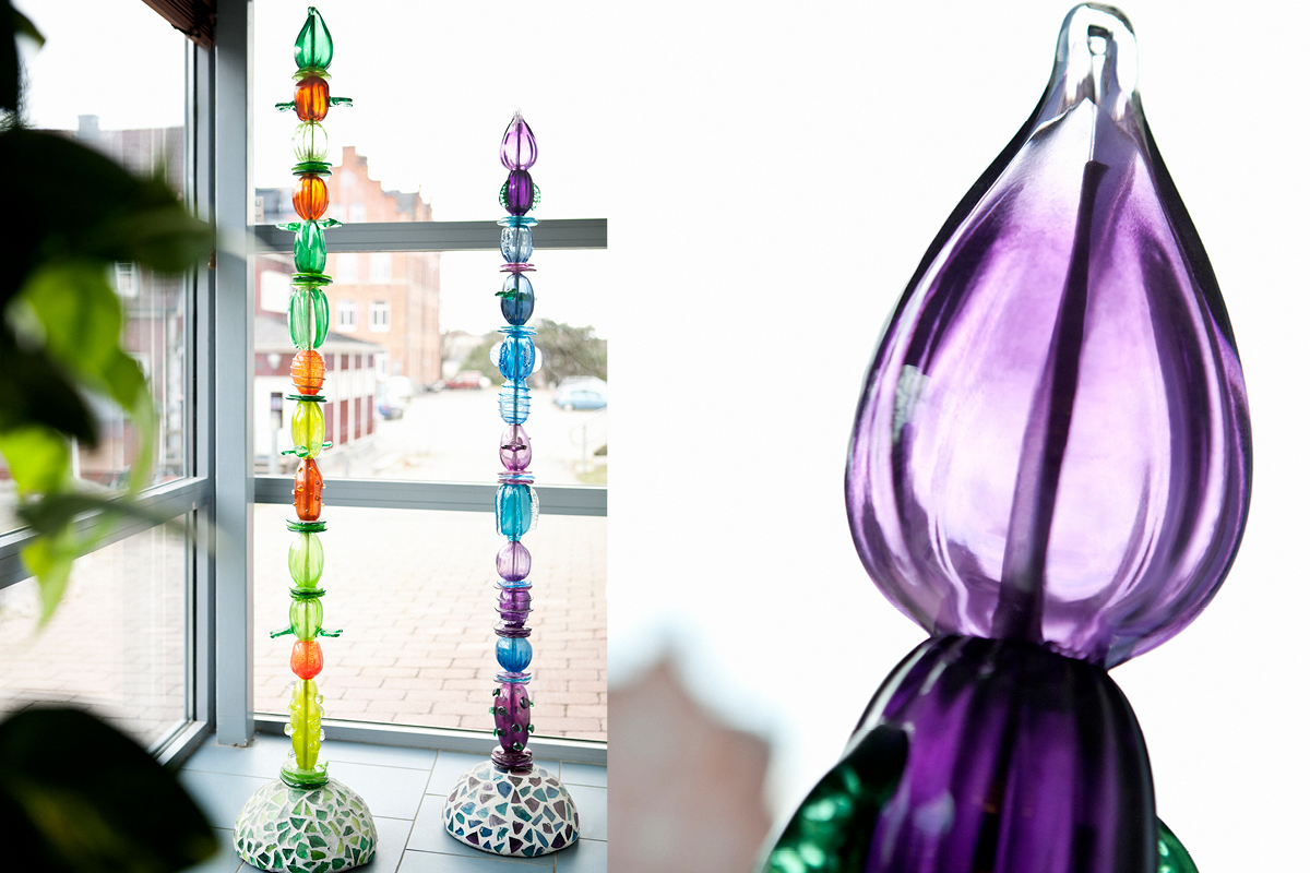 Jag tycker mycket om att arbeta med det offentliga rummet. Att konsten här får möta de människor som vistas på den specifika platsen. Jag arbetar oftast med blåst glas och sandgjutna glasreliefer som både kan vara frihängande verk eller fast installation på vägg, för såväl inom och utomhus miljöer. Under senare tid har jag även börjat arbeta med lera igen, då jag har ett förflutet som keramiker. Glas och lera passar fint ihop, kontrasterna skapar spänning och lämpar sig mycket bra för offentlig gestaltning.