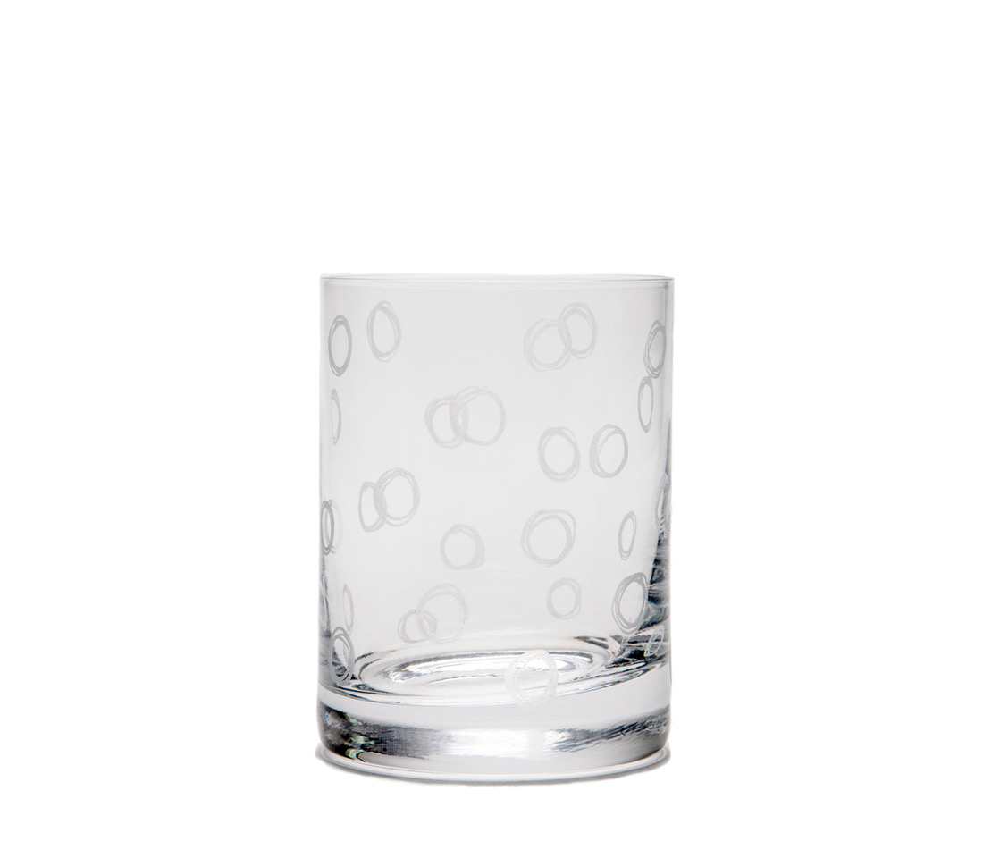 Frihandblåst dricksglas i träform med sprängd kant och ytgravering.